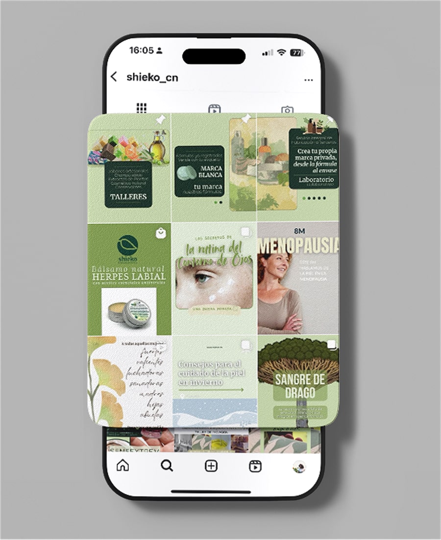 Myriam tiene una tienda presencial en Cercedilla (Madrid) y una tienda online. Quería que sus redes sociales tuvieran actividad semanal y el contenido fuera de valor, siempre aportando información muy apreciada por su clientela. Se establecieron unas directrices en cuanto a colores, línea y estilo de publicación, tratando así de mantener una relación con su público más allá de una pura relación comercial.